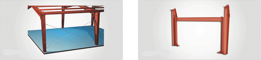 This system involves tapered or parallel columns or tapered beams which are called rafters. Base of column is either fixed or pinned based on the load requirements.